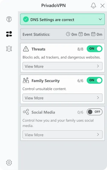 Easy to filter Web traffic, block adult or gambling sites, and set specific regions for streaming access. PrivadoVPN supports every major platform—including Windows, macOS, Android, iOS, and Fire TV—so your protection travels with you. Even when the VPN is disconnected, PhantomMode keeps Android devices shielded from threats, so you're never left exposed.
